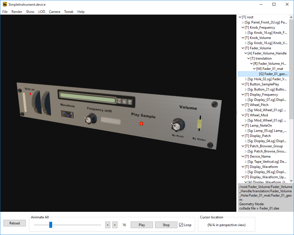Parts Libraryの3Dジオメトリを注意深く読み進めると、いくつかのアートワークへの失われたリンクにたびたび遭遇するが、Reason ReconやRack Extension Designerでは正しく動作する。これはこの3Dジオメトリが制作された過程における履歴が残っているにすぎず、実際には削除されたか、あるいはRack Extension Designer formatにコンバートされてtexturesフォルダなどに移動済みか、いずれにせよ「開発ツール上で正しく動作しているならそれでよし」だと割り切り見て見ぬふりし、前に進むのが良い選択といえる。このCOLLADAのXMLについてはオフィシャルで日本語ドキュメントがある。Rack Extension Designer formatではCOLLADA 1.4を採用している。